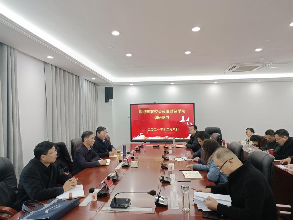 12月8日下午,校党委副书记、校长李震,校党委委员、副校长李升和及研究生处处长张春雨一行调研指导财经学院会计专业硕士学位点申报工作。财经学院党政领导班子成员,财管系、会计系全体教师以及学院所有副高以上教师参加会议,会议由财经学院院长郝世绵主持。