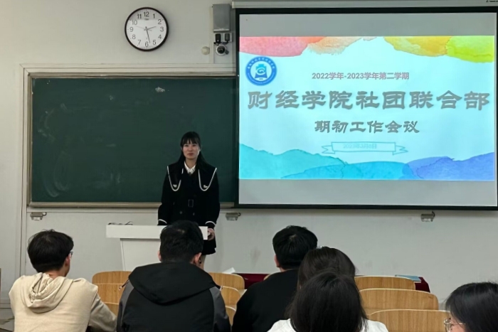 为进一步推动学生社团的建设与发展,加强学生社团的组织力与引领力,提升校园文化品位和氛围,3月8日,财经学院在致知楼C107召开新学期社团联合会工作会议。学院团委书记、纪委副书记薛枫及学院社联、各协会主要负责人参加会议。会议由辅导员丁雨妍主持。