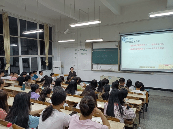 胡文丽立足《关于加强和改进新形势下高校思想政治工作的意见》文件精神,围绕“高校思想政治工作关系高校培养什么样的人、如何培养人以及为谁培养人这个根本问题”为同学们讲解了什么是理想信念及坚定理想信念的必要性。胡文丽结合《觉醒年代》、学校优秀共产党员师生代表的实际案例,向同学们叙述了无数仁人志士为实现中华民族伟大复兴进行了艰难曲折、不屈不挠的斗争,讲述了坚定理想信念的重要性、个人与国家发展的关系,鼓励新生要学好专业知识,练就过硬本领,勇担时代重任。