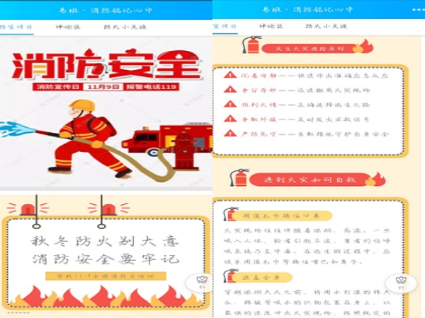 每年的11月9日是我国的全国消防日。在电话号码中,119是火灾报警电话,与11月9日中3个阿拉伯数字通形同序,易为人们接受,而且这一天前后,正值风干物燥、火灾多发之际,更应提高安全意识,减少安全隐患,关注消防安全,共建和谐校园。
