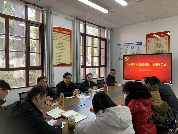 12月7日下午,动物科学学院在凤阳校区西办公楼116会议室召开党委理论学习中心组学习会。校党委委员、组织部部长钱锐,党委组织部副处级组织员许欣列席旁听。动物科学学院党政领导、党委委员、团委和工会主要负责人参加学习,学习会由学院党委书记姚勇主持。