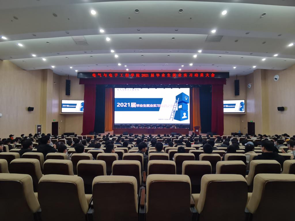 11月26日下午,电气与电子工程学院于图书馆东附楼二楼报告厅召开2021届毕业生就业实习动员大会。电气学院党总支书记骆海邦、副书记尚磊、院长助理国海、各系主任和专业负责人、毕业班辅导员出席大会,2021届全体毕业生参与,大会由骆海邦主持。