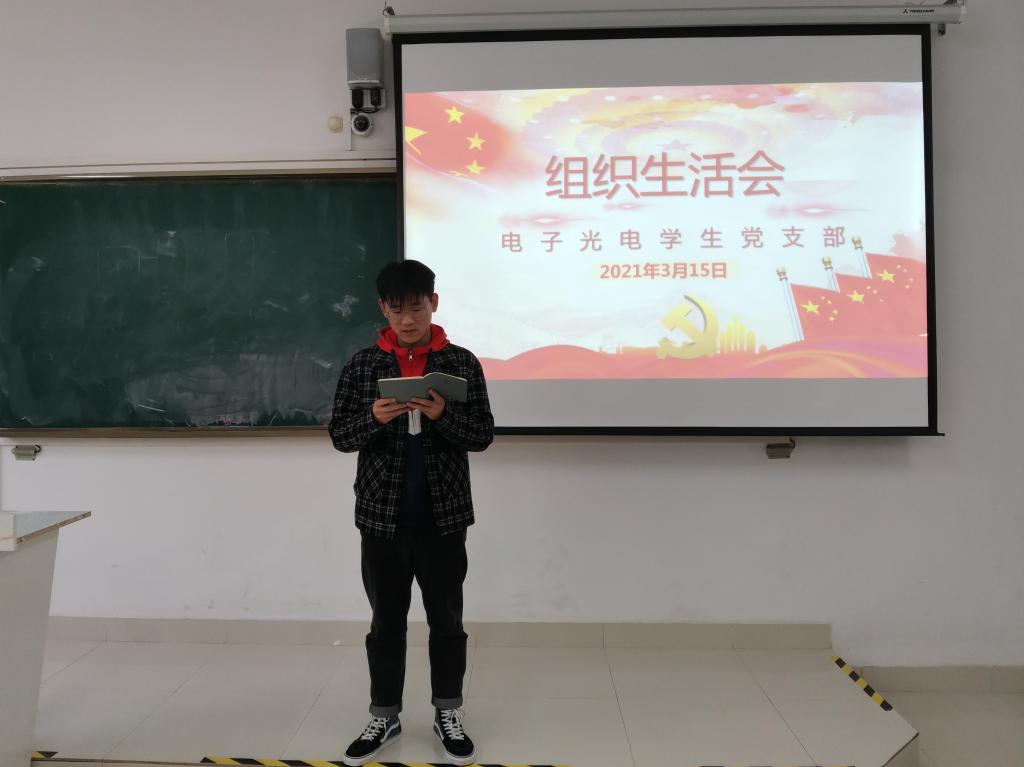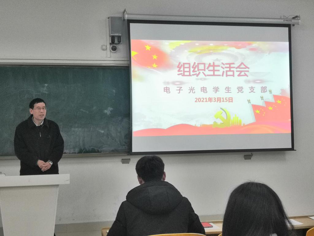 3月15日下午,电气与电子工程学院电子光电学生党支部在致知楼C308召开2020年度组织生活会暨民主评议党员大会。电气与电子工程学院党委书记骆海邦,学院团委书记张成孜及支部全体党员参加会议,会议由支部负责人张深主持。