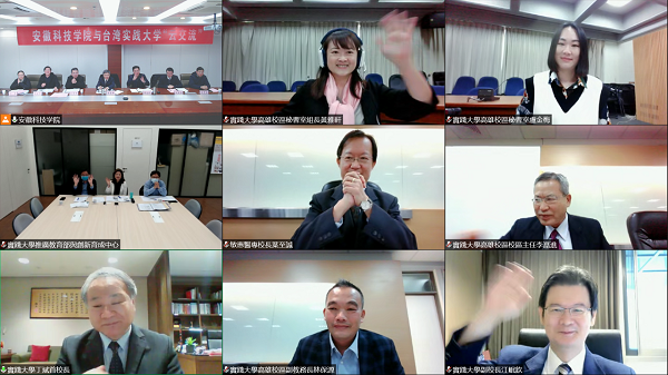 12月17日上午,我校与台湾实践大学举行“云交流”活动,打破时空阻隔,实现云端相聚。党委书记蒋德勤,党委委员、副院长黄友锐,台湾实践大学校长丁斌首、副校长江岷钦,特邀嘉宾敏惠医专校长叶至诚出席会议。会议由校港澳台事务办公室主任刘东楼、实践大学秘书室组长黄雅轩共同主持。