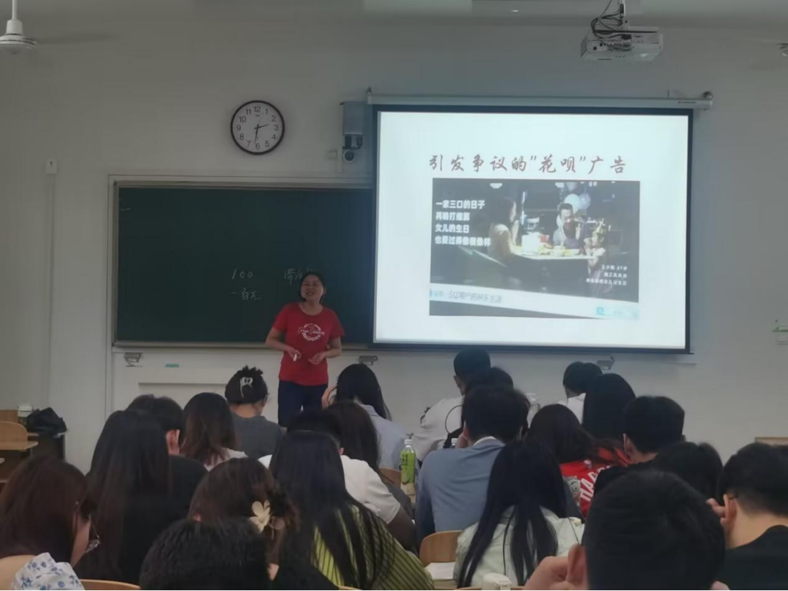 管理学院营销系雷宇副教授受邀做了一堂精彩的《广告学》课程思政示范课。雷宇先从学习通发布的话题讨论“你认为什么样的广告是效果好的广告”开始,带领学生深入思考:应该从哪些方面评价一则广告的效果?然后以案例“迪奥,我GET不到你的美”,引导学生认识到,评价广告不能仅仅从经济效果单方面评价,而应该考虑广告的传播效果和社会效果等多方面,通过此案例,帮助学生坚持文化自信,激发学生的爱国情怀和报国之志。最后,雷宇老师以案例“引发争议的花呗广告”告诫学生:对待广告,一定要有自己的鉴别能力,不能被商家“牵着鼻子走”,提醒学生一定要在自己的偿还能力之内申请金融借贷工具,用更加全面的、综合的视角去评判一则广告的广告效果。
