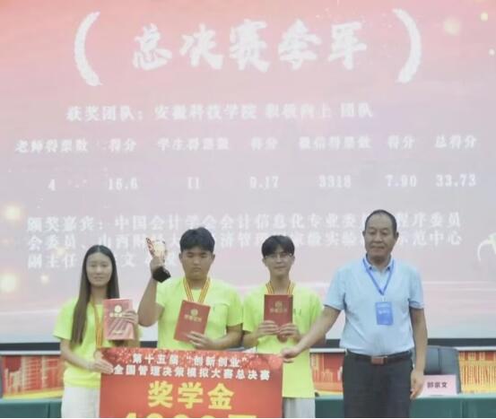 学校和学院一直高度重视并支持学生参加各类大学生学科与技能竞赛。我校学生在历届“创新创业”全国管理决策模拟大赛全国总决赛和安徽省赛中多次获得特等奖或一等奖,这次比赛展现了我校学生扎实的专业基础和较强的实践能力,也提高了学生的创新创业意识。(特约通讯员:江旭聪 摄影:杨续昌 审核:陈传万)