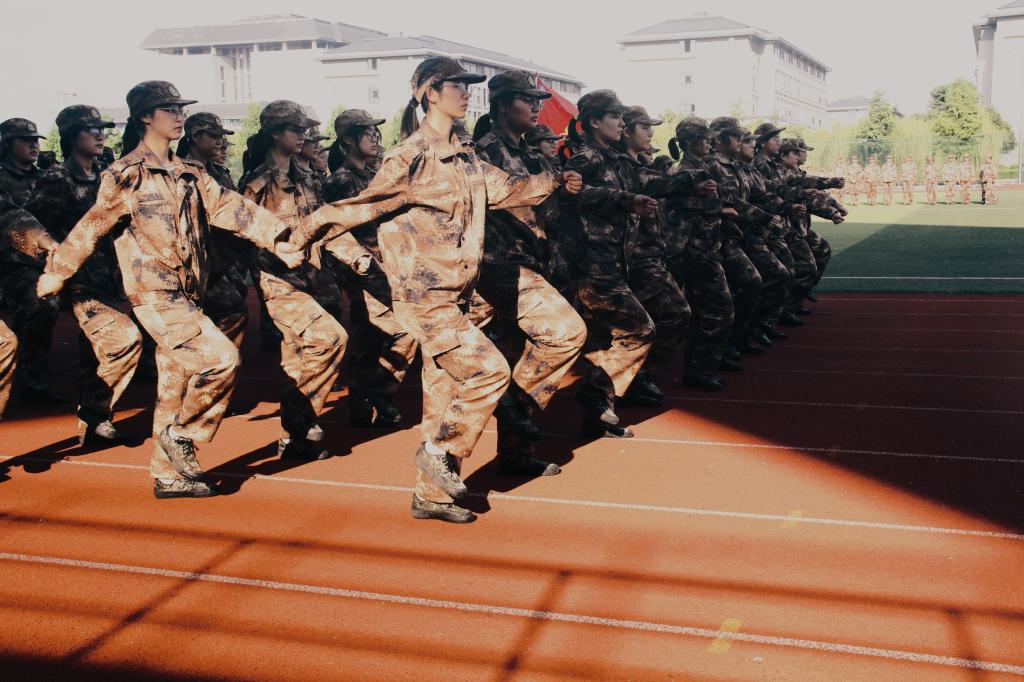 在军训中,教官的谆谆教导,同学们的互相帮助,老师和学姐学长的关心,让我们收获了温暖,学会了团队合作,更学到了军人身上钢铁一般的意志,铁一般的纪律意识,赤诚如血的爱国之心。同学们精神抖擞,步调一致,不厌其烦的一次又一次的训练原地转法,立定,原地踏步,齐步等基本动作,每个动作如臂使手,金石可镂,每次落脚铿锵有力,全身的疲惫击败不了心中的斗志。