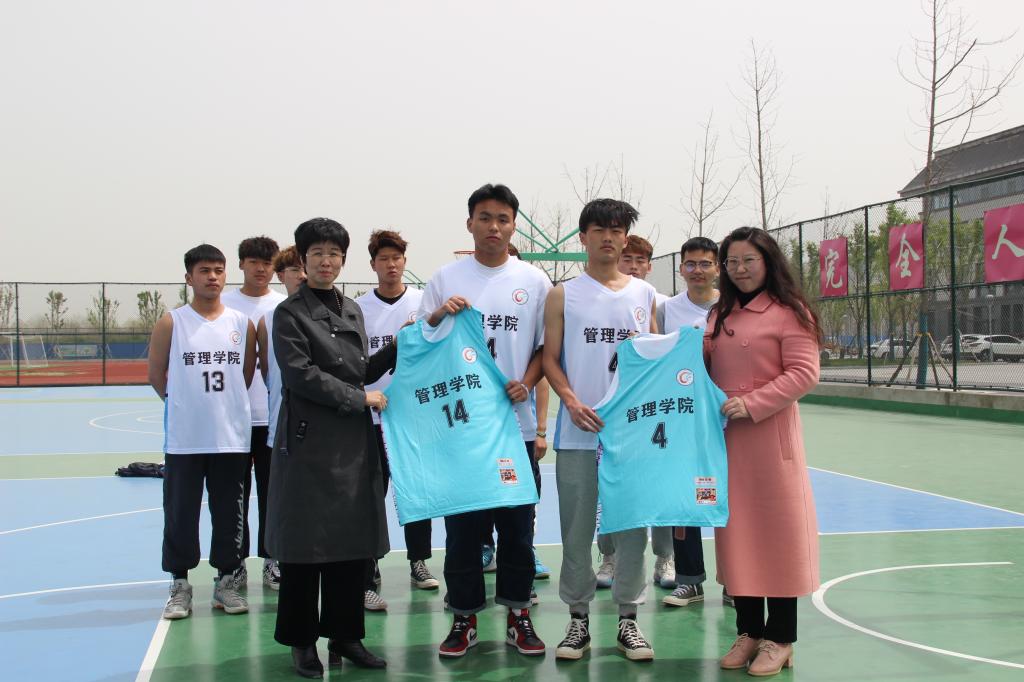 3月30日中午,管理学院男子篮球队校赛出征暨训练队服发放仪式在龙湖校区东篮球场举行。管理学院党委副书记陶漫,辅导员方辛、江旭聪应邀出席仪式。仪式由江旭聪主持。