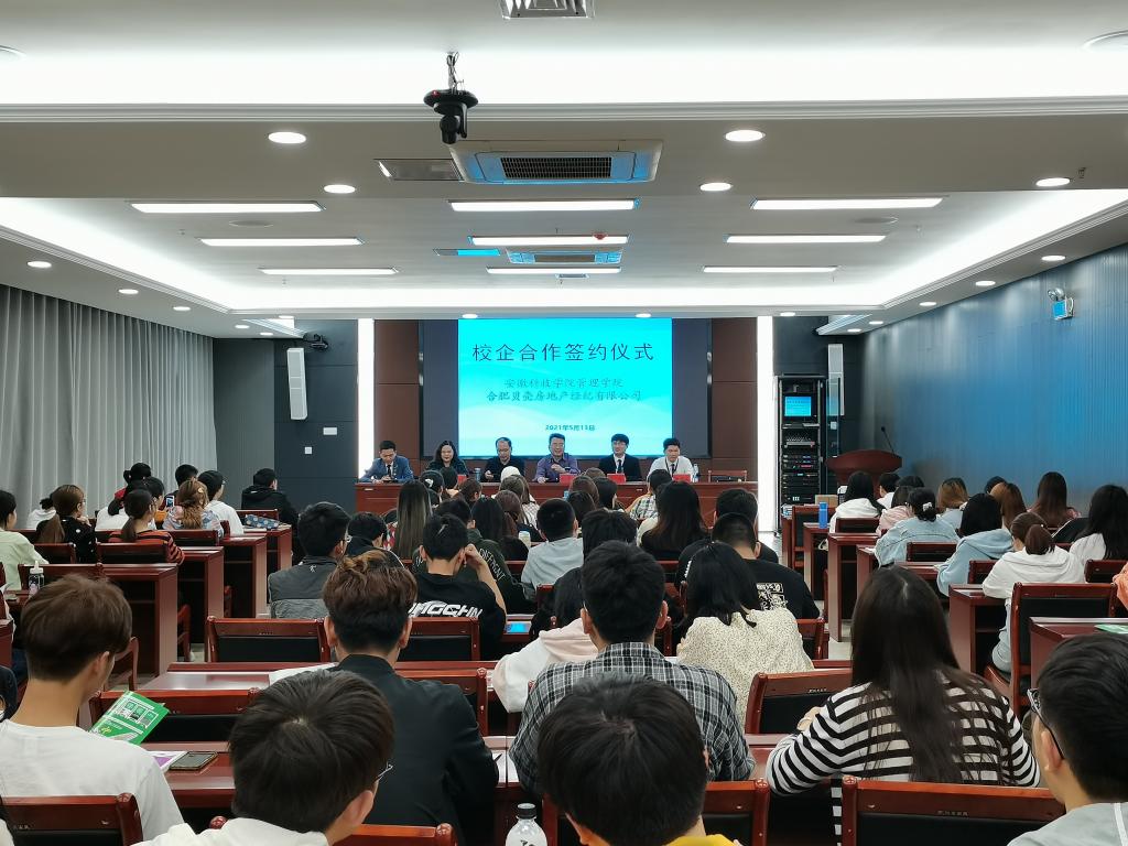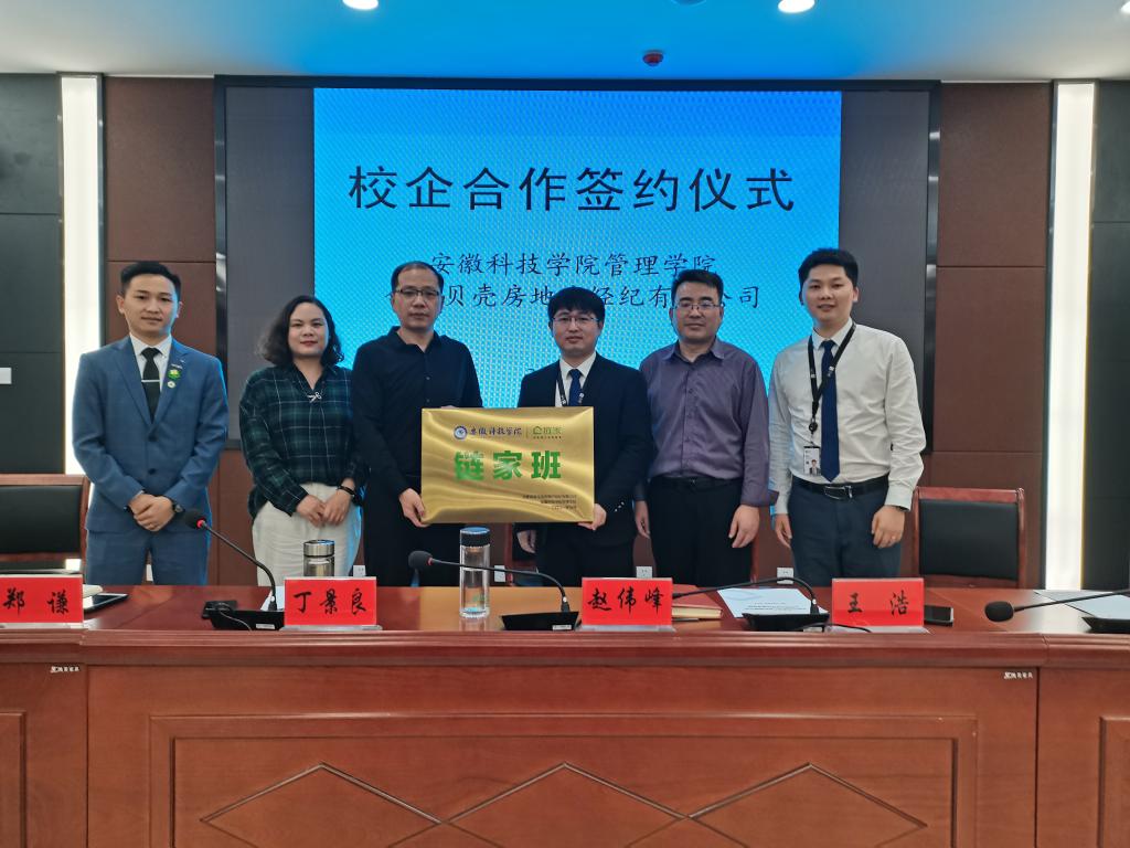 赵伟峰与王浩共同签署了《环亚在线手机版(大中国区)与合肥贝壳房地产经纪有限公司校企合作协议书》,举行了人才培养合作班授牌仪式。