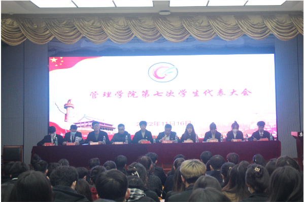 11月16日下午4时,管理学院第七次学生代表大会在龙湖校区敏行楼A报告厅召开。学院党委副书记陶漫,党政办公室主任李永鹏,团委副书记江旭聪,专职辅导员黄斐、姚姝媛、赵晨妍等大会主席团成员出席会议并在主席台就座。大会秘书长江旭聪、主席团团长朱一分别主持第一次和第二次全体会议。