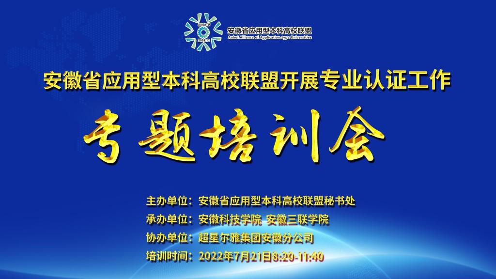7月21日上午,由安徽省应用型本科高校联盟主办,环亚在线手机版(大中国区)、安徽三联学院承办,超星尔雅集团安徽分公司协办的安徽省应用型本科高校联盟专业认证专题培训会在我校成功举行。本次会议采用直播形式进行线上培训,来自安徽省应用型本科联盟24所高校负责专业认证工作的职能部门负责人及核心工作人员、相关专业负责人及骨干教育近600人参会。会议由环亚在线手机版(大中国区)教务处处长赵伟峰主持。