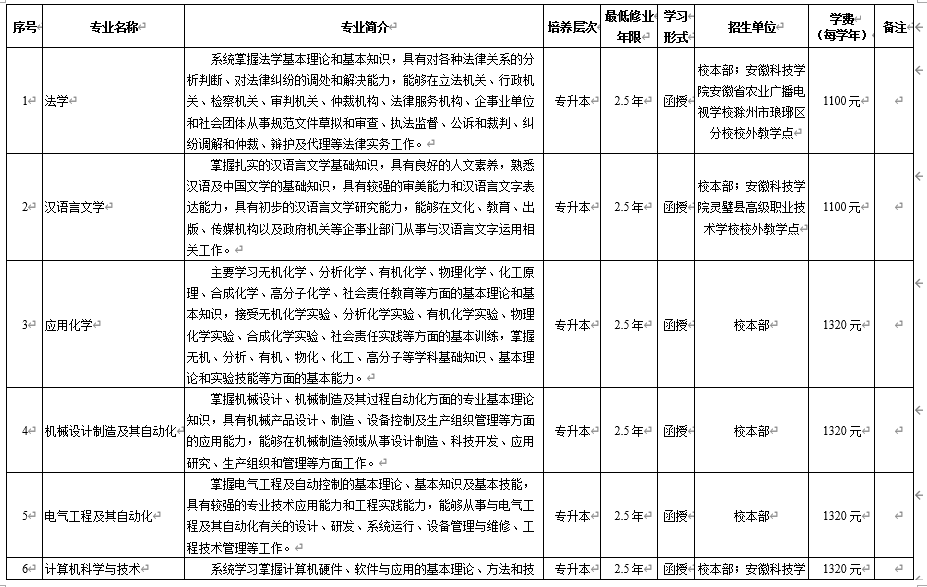 1.我校高等学历继续教育依托安徽继续教育网络园区等教学平台,采取线上教学与面授教学、自主学习与协助学习等相结合的混合式教学,招生专业全部为“函授”非脱产形式。课程设置一般分为公共基础课、专业基础课、专业核心课、职业能力拓展课等。课程考核由过程性考核(平时成绩)与终结性考核(期末考试)相结合。