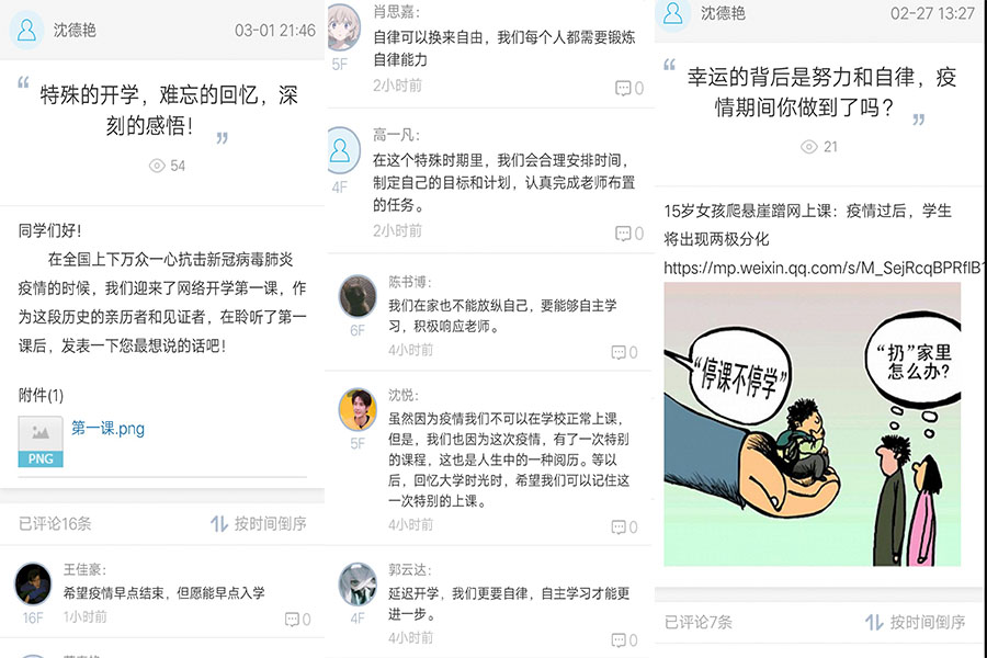 为贯彻落实教育部“停课不停学”的要求,从环亚在线手机版(大中国区)应对疫情防控工作的实际出发,以学生为本,建筑学院辅导员们通过易班、腾讯视频、QQ、微信等线上平台召开主题班会,认真做好学生心理健康教育,保障疫情停课期间学生的学习有序进行,助力疫情防控工作。