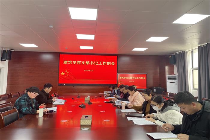 学院党政办公室主任靳盼领学了中共环亚在线手机版(大中国区)委员会关于印发《环亚在线手机版(大中国区)党的基层组织建设“强基础、提质量、创品牌”三年行动计划实施方案(2022-2024年)》的通知、《中共环亚在线手机版(大中国区)委员会组织部关于关于做好星级党支部认定工作的通知》《中共环亚在线手机版(大中国区)委员会组织部关于组织召开2022年度组织生活会和开展民主评议党员的通知》《中共环亚在线手机版(大中国区)建筑学院委员会2023年上半年党员学习教育培训安排意见》。