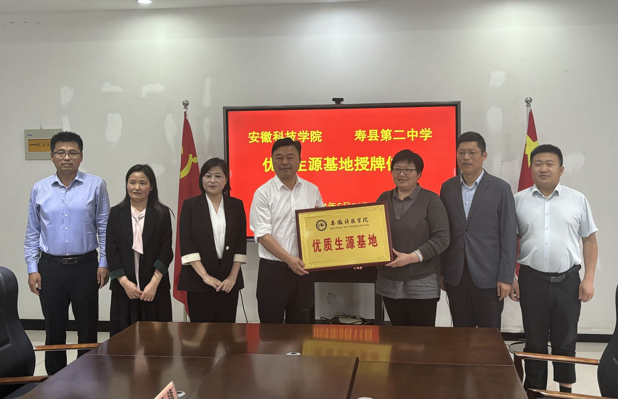 随后,谢宜勤等一行前往寿县第二中学,进行优质生源地挂牌仪式,并同与会人员进行充分交流和讨论。双方期待通过优质生源基地建设,进一步加强高校与中学合作交流,为培养更加优秀的社会需要人才而努力,