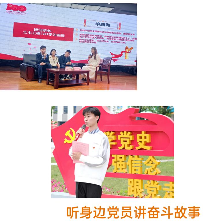 现场,三位校青年宣讲团成员、学生党员单新海、姚云、陈晨讲述他们的入党心路,分享在追梦路上拼搏、进取的故事,让更多青年感受青春正能量。