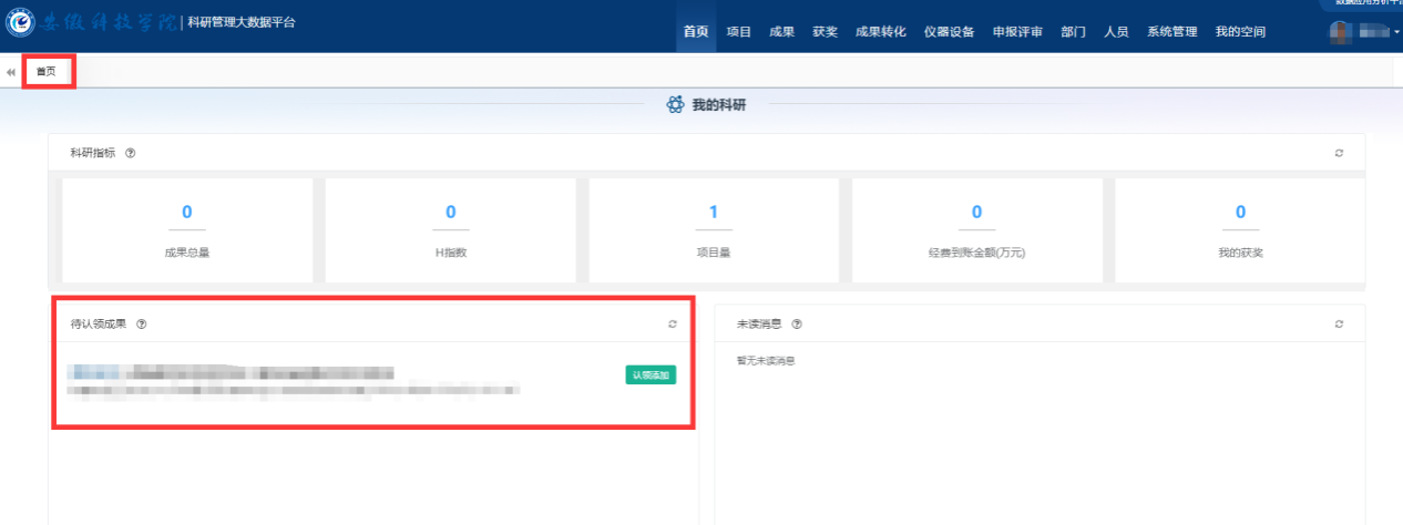 成果认领/录入、获奖信息添加、知识产权申请、成果转化申请、科研仪器设备验收。