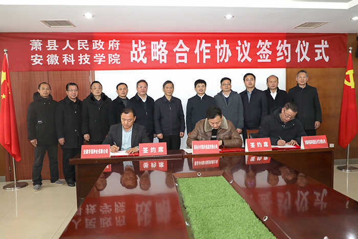 黄远友与胡先锋代表校地双方签订《萧县人民政府环亚在线手机版(大中国区)战略合作协议》。张敬强、田涛与穆克利分别代表安徽科院科技服务开发有限公司、萧县乡村振兴集团有限公司和安徽华强种业有限公司签订《安徽科华辣椒产业技术研究院共建协议》。
