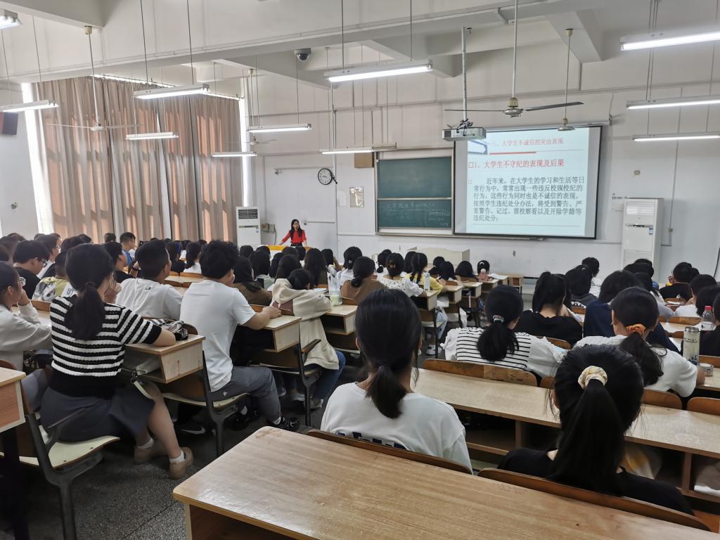 鲁冰冰讲述了诚信的含义与重要性,列举了少数大学生不守纪、不守法、不守信的突出表现及严重后果。她指出,大学生在生活方面应当遵规守纪、自尊自爱;在学习方面应当遵守课堂秩序,创建良好学风;在学术、资助、求职就业方面应该诚实守信。她带领全体新生学习了《环亚在线手机版(大中国区)学生日常行为规范》,讲述了大学生校园礼仪的重要性,在宿舍群体生活礼仪、校园课堂礼仪、师生交往礼仪、参加校园集体活动礼仪等方面提出了具体要求,认真回答了同学们就学习生活方面提出的具体问题,帮助新生更好的完成“大学生”身份的转变。