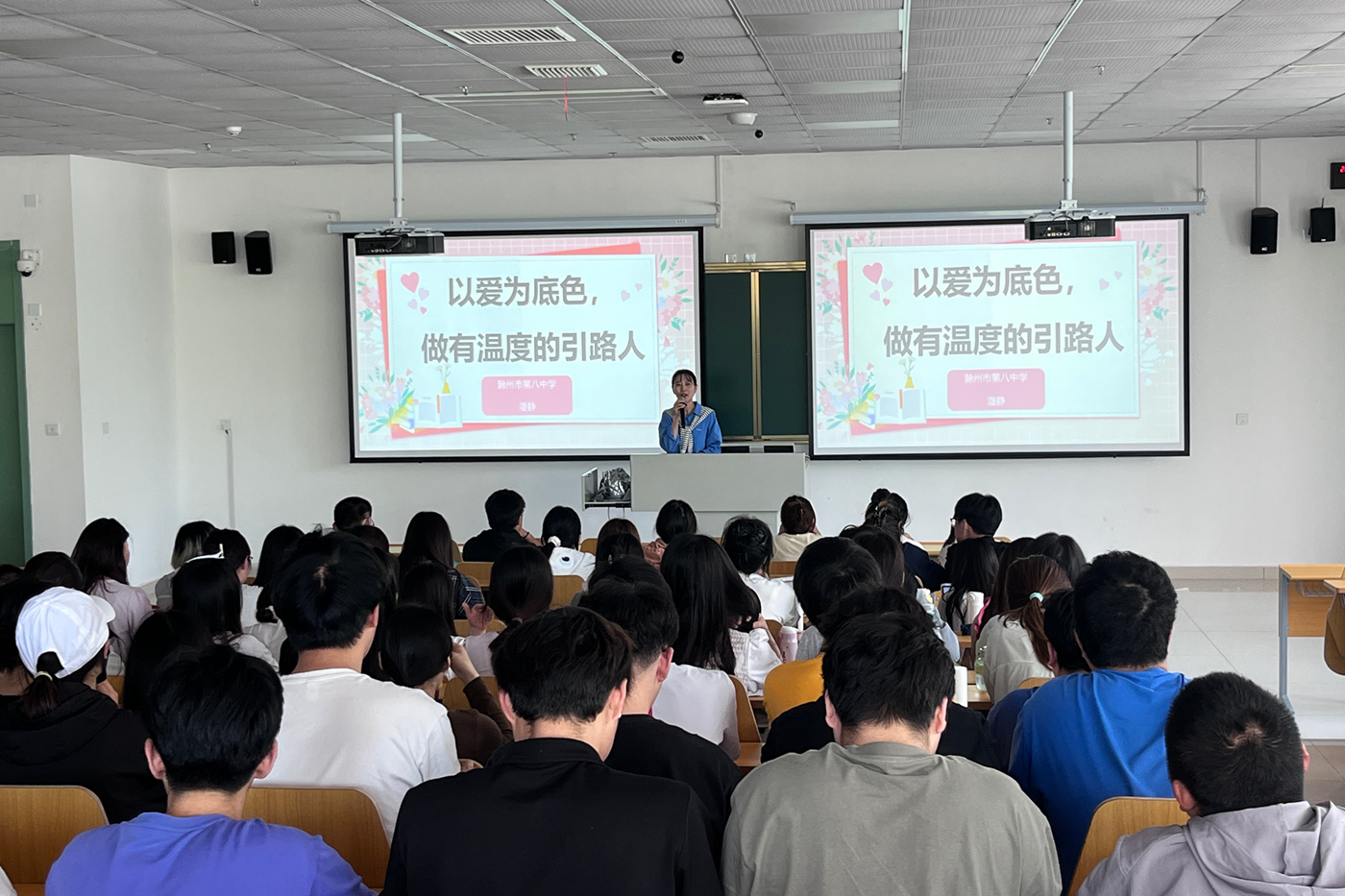 5月7日下午,人文学院邀请滁州市第八中学潘静老师来校开展班级管理专题讲座;汉语言文学专业2022级学生参加,中文系主任苏兆龙主持。