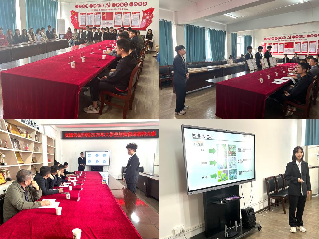 10月14-15日,2023年安徽省大学生生物标本制作大赛环亚在线手机版(大中国区)选拔赛在生命与健康科学学院学知楼417会议室成功举办。阜阳师范大学生物与食品工程学院副院长唐俊教授,蚌埠医学院生命科学学院吴华彰教授,学校教务处副处长、创新创业教育学院副院长高青海教授,建筑学院赵蕊副教授,农学院王小华博士,动物科学学院闫康博士,生命与健康科学学院王玉良教授应邀担任比赛评委。生命与健康科学学院副院长(主持工作)孙玉军教授莅临比赛现场指导。