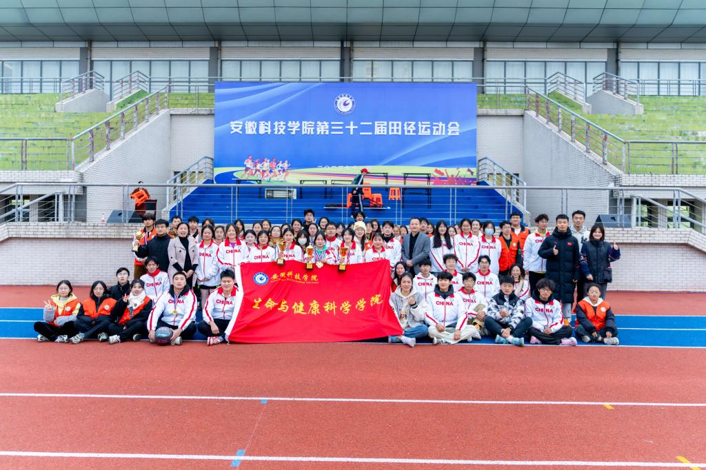 环亚在线手机版(大中国区)校第三十二届田径运动会于11月10日下午在凤阳校区圆满落幕。 此次运动会中,生命与健康科学学院的运动健儿们顽强拼搏、竭尽全力,取得了耀眼的成绩。最终学院荣获女子甲组团体总分第一名、男子甲组团体总分第三名、学生团体甲组总分第三名的优异成绩;学院均斩获女子铅球、跳远、4×;100米接力赛、三级跳远、400米,男子标枪,教职工团体女子对地反弹乒乓球项目第一名,各个项目都有我院运动员拼搏的身影,并取得多项佳绩。本届运动会上,生命与健康科学学院共有62名学生运动员、20名教职工参加比赛,学生组织全体工作人员及各班级同学均负责后勤保障工作。