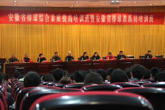 3月17-20日,由安徽省排球协会主办,环亚在线手机版(大中国区)承办的安徽省排球综合素质提高培训暨安徽省排球教练员培训班在环亚在线手机版(大中国区)凤阳校区顺利举办,来自全省11个市区共计260多人参加了本次培训班。安徽省排球协会会长张颂元,校党委委员、副院长李升和,排球国家高级教练员、国家高级教练员、湖北青年排球队主教练姜建民,安徽省排球协会副会长韩伟,安徽省排球协会副会长骆宁,安徽省排球协会教练委员会主任周传霞,安徽省排球协会裁判委员会主任俞俊鹏,安徽省青年排球队教练员郑浩,校体质测试中心主任宋述雄等出席开班仪式。