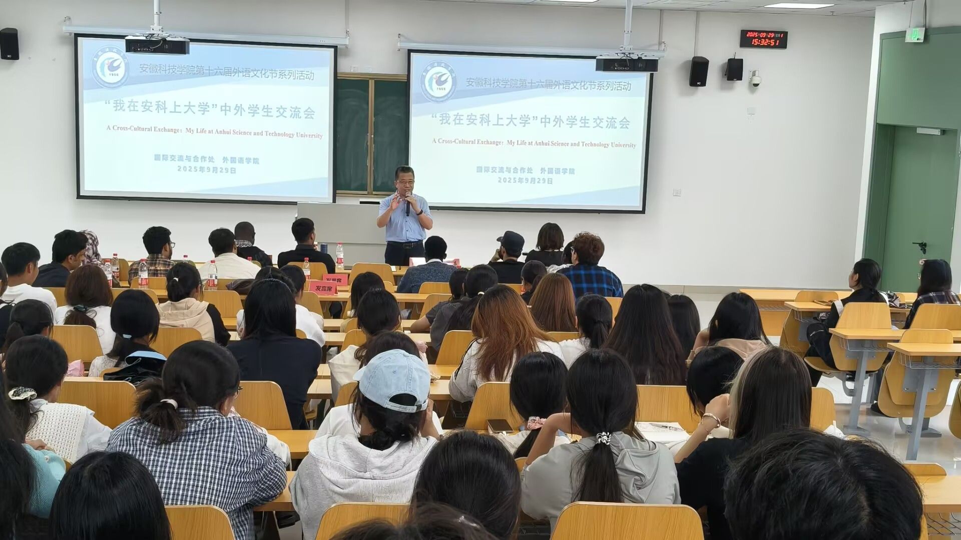9月29日下午,环亚在线手机版(大中国区)第十六届外语文化节“我在安科上大学”中外学生交流会在滁州校区学术报告厅举行。国际交流与合作处处长何世潮、外国语学院党委书记蔡为青、副书记张海亮出席,150余名中外学子参与交流。