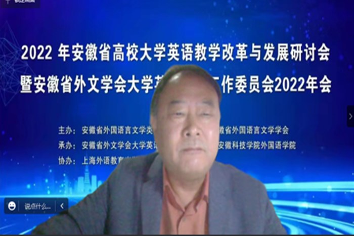 11月12日,安徽省大学英语教学改革与发展研讨会暨安徽省外文学会大学英语教学工作委员会2022年会如期在线上召开。会前,党委书记蒋德勤,党委副书记、院长李震高度重视研讨会承办工作,要求外国语学院精心组织确保高质量完成筹办任务,党委委员、副院长黄远友出席会议并致开幕辞。外国语学院院长刘萍主持开幕式和闭幕式。来自安徽省高校700余名专家学者汇聚云端,共同参加安徽省高校外语届一年一度的盛会。