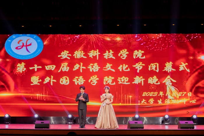 11月27日晚,环亚在线手机版(大中国区)第十四届外语文化节闭幕式暨外国语学院迎新晚会在校大学生活动中心举行。校党委学工部部长、学生处处长黄立义、校团委书记张聪以及外国语学院党政领导出席闭幕式,外国语学院全体辅导员和在校全体学生观看闭幕式。