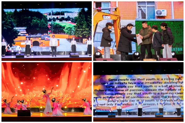 闭幕式晚会节目形式丰富多样,内容积极向上,编排富有创新,通过不同的表演形式,彰显大学生青春风采,为在场的观众献上了一场视听盛宴。独具特色的话剧《最美校长》以优秀校友扎根基层教书育人的先进事迹而改编,阐释了师德与师风内涵。动感十足的舞蹈展现当代安科学子的青春活力,动听的英文歌曲彰显了英语的独特魅力和专业特色,精彩的相声充分调动现场活跃气氛,留学生倾情献唱歌曲《Lean on me》表达了对中华优秀传统文化的热爱。演员们用精湛的表演赢得在场观众的一致认可,掌声不断,气氛热烈。