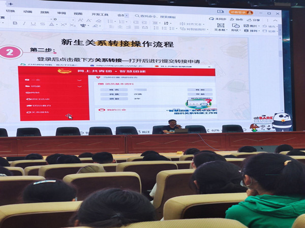院团委学生委员蔡薇薇对《第二课堂成绩单(社会责任学分认定)实施细则(试行)》文件精神对二课成绩单的认定范围、认定标准等方面进行详细解读,就第二课堂管理及学分认定等内容在平台网页端、手机客户端的操作流程进行了演示,现场模拟从活动发起到签到签退、上传新闻稿件等全过程。