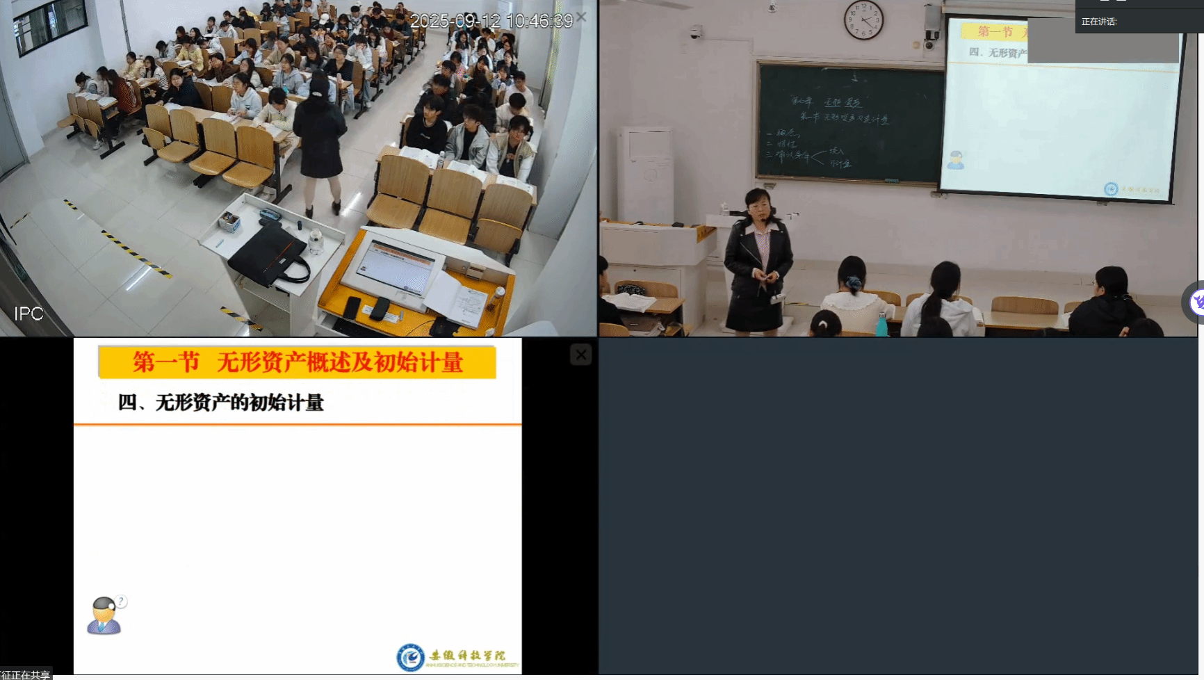 钟德仁系统讲解了无形资产的概念、特征、确认条件及具体内容,涵盖其入账价值、摊销、期末计价与转让等关键环节。她通过随堂练习强化学生对知识点的理解,并结合华为公司的研发投入与资本化案例,引导学生思考无形资产计量对企业财务与战略发展的影响。课堂互动频繁,学生积极参与讨论,教学氛围活跃。