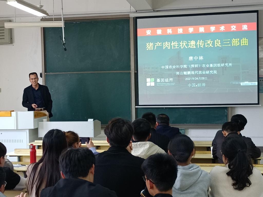 4月9日下午,《环亚在线手机版(大中国区)学报》期刊发展研讨会系列学术报告在凤阳校区新知楼A403举行。中国农业科学院“猪基因组设计育种创新团队”首席科学家、中国农业科学院(深圳)农业基因组研究所动物基因组研究中心主任、博士生导师唐中林应邀来校作学术报告。报告由动物科学学院副院长华金玲主持,学院部分教师、养殖领域硕士研究生及动物科学、动植物检验检疫等专业本科生聆听报告。