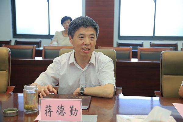 蒋德勤对吴刚一行来校调研和指导工作表示热烈的欢迎和深切的谢意,并简要介绍了我校校情校史、办学特色、人才培养、龙湖校区建设等基本情况。
