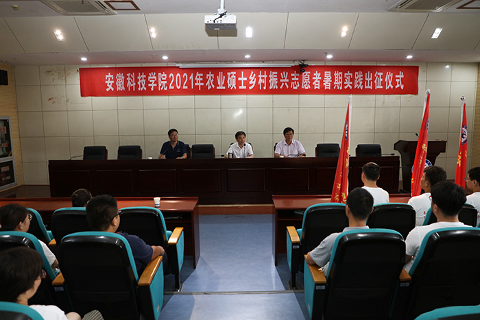 7月26日下午,我校“志愿服务投身乡村振兴,实践育人助推农业发展”2021年农业硕士乡村振兴志愿者暑期实践出征仪式在图书馆一楼报告厅举行。校党委书记蒋德勤,党委委员、副校长李升和出席仪式,各研究生培养学院院长、副院长,带队教师,研究生处工作人员和全体研究生志愿者参加出征仪式。出征仪式由张春雨主持。