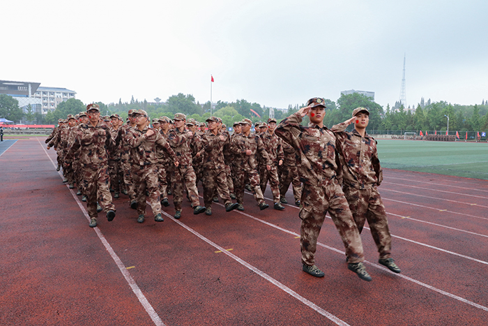 历经两周军训的洗礼,参加军训的2021级学子们身着戎装、军容整齐,以昂扬的精神面貌在操场列队,接受领导和老师们对军训成果的检阅。在分列式表演中,各军训方队迈着整齐矫健的步伐,喊着雄壮嘹亮的口号正步行进到主席台前接受检阅,五步拳、匍匐刀、军体拳等方队分别展示他们军训成果,新生们青春蓬勃的精神面貌和飒爽的英姿更是赢得了在场师生的阵阵掌声。
