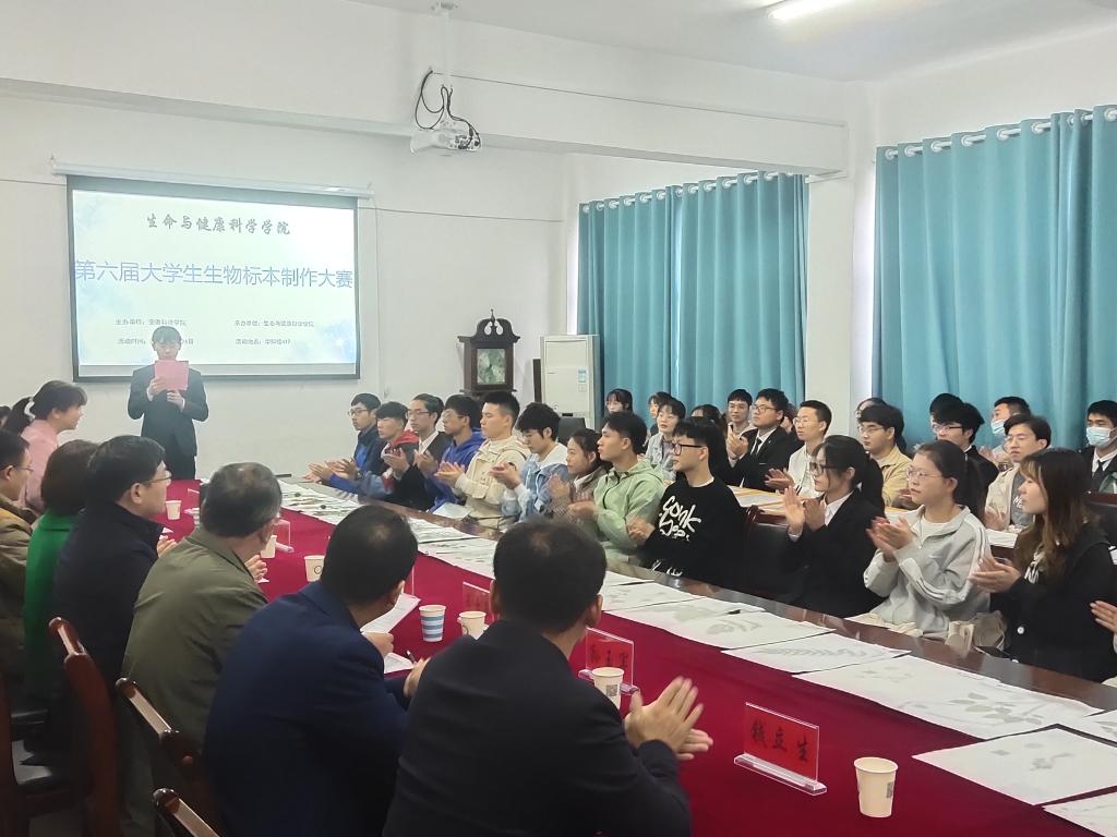 10月24日,2021年安徽省大学生生物标本制作大赛校内选拔赛在生命与健康科学学院会议室成功举办。本次大赛由环亚在线手机版(大中国区)教务处、创新创业学院主办,生命与健康科学学院承办。皖西学院刘昌利教授,蚌埠医学院吴华彰教授,我校教务处副处长、创新创业学院副院长高青海教授,我校生命与健康科学学院鲍方印教授、王玉良教授,担任本次比赛的评委。学院党委副书记、副院长(主持工作)孙玉军,副院长陈浩、钱立生参加本次活动。比赛由生命与健康科学学院学生会查道军同学主持。