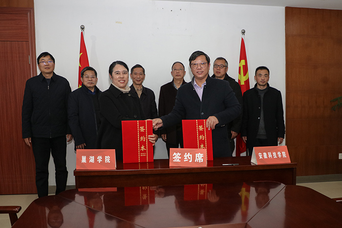 12月23日下午,巢湖学院与我校联合培养硕士研究生签约仪式在我校图书馆九楼会议室举行。巢湖学院党委副书记、校长祝家贵,党委委员、副校长朱定秀;我校党委副书记、校长李震,党委委员、副校长李升和,党委研究生工作部部长、研究生处处长、学科建设办公室主任张春雨等出席签约仪式。