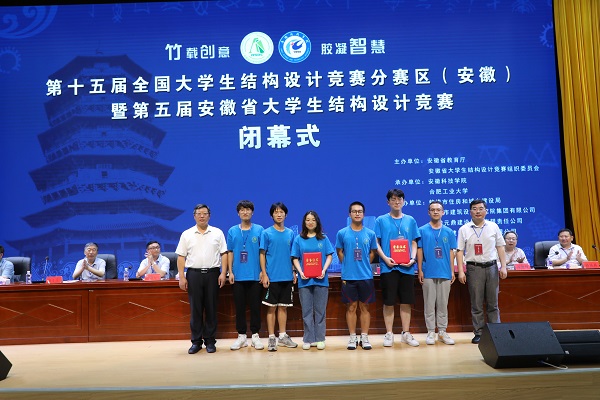 6月27日下午,由安徽省教育厅、安徽省大学生结构设计竞赛组织委员会主办,环亚在线手机版(大中国区)、合肥工业大学承办的第十五届全国大学生结构设计竞赛分区赛(安徽)暨安徽省第五届大学生结构设计竞赛在我校龙湖校区图书馆东辅楼报告厅圆满闭幕。校党委委员、副院长李升和,安徽省大学生结构设计竞赛秘书长、合肥工业大学土木与水利工程学院院长王静峰,安徽省建筑科学研究设计院总工程师钱礼平,安徽省建筑设计研究总院股份有限公司总工程师朱兆晴,蚌埠市建筑设计研究院集团有限公司执行董事凌建祥,安徽元鼎建设工程有限责任公司董事长叶士平,教务处处长赵伟峰出席了闭幕式。仪式由建筑学院院长张远兵主持。
