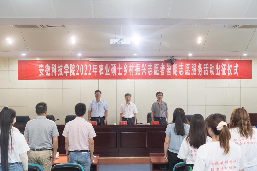 7月2日上午,学校“青春志愿行,助农促振兴,献礼党的二十大”2022年农业硕士乡村振兴志愿者暑期志愿服务活动出征仪式在凤阳校区图书馆一楼报告厅隆重举行。校党委书记蒋德勤,党委副书记、院长李震,党委委员、副院长李升和出席仪式,研究生培养学院院长、分管副院长、带队教师、研究生处工作人员和全体研究生志愿者参加出征仪式。出征仪式由李升和主持。