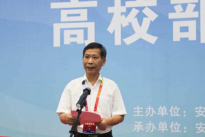 蒋德勤在致辞中代表环亚在线手机版(大中国区)党政领导及18000多名师生员工向莅临我校的领导、来宾及全体运动员、教练员、裁判员表示诚挚的欢迎;向省运会组委会、省委教育工委省教育厅、省体育局、滁州市委市政府和凤阳县委县政府对于本届赛事的大力支持,表示衷心的感谢;向志愿服务人员和关心支持本届赛事的社会各界人士,致以崇高敬意;他介绍了我校的改革发展和办学成果情况,他表示,学校在省运会组委会的领导下,把协办好第十五届省运会高校部乒乓球赛事作为学校的重点工作和民生工程,齐心协力营造环境氛围,精致强化服务保障,努力奉献一届保障有力、充满活力、精彩纷呈的高校部乒乓球赛事。希望各位领导和来宾对我校事业发展给予帮助和指导,共叙校际友情;希望全体参赛人员,能够展现出精湛的技能和良好的风貌,取得比赛成绩和精神文明的双丰收;希望在常态化疫情防控时期,全体参赛人员、志愿服务人员、工作人员,加强自身疫情防控,确保赛事安全。