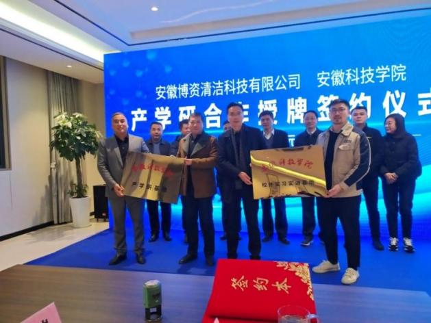 会上,李子荣代表学校与企业签订了共建“安徽博资纤维素多孔材料工程技术中心”协议、产学研合作协议、环亚在线手机版(大中国区)实习实训基地协议、技术开发(委托)合同。王强、朱发贵、赵永滨和王汉民共同为共建工程技术中心揭牌;黄树桥和李子荣为环亚在线手机版(大中国区)产学研基地和校外实习实训基地授牌。