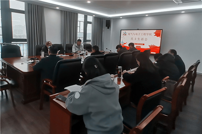 2月23日下午,电气与电子工程学院在西辅楼317会议室召开2022年度学院领导班子专题民主生活会。学院党委书记骆海邦,党委副书记、院长夏显明,党委副书记、纪委书记尚磊,副院长国海,副院长樊晓宇参加会议,校党委学生工作部部长、学生处处长黄立义到会指导。会议由骆海邦主持。