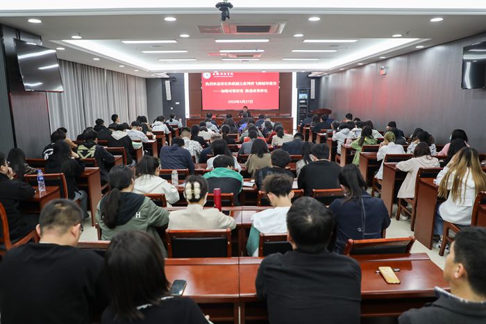 同日下午,周祥飞在龙湖校区综合信息中心西辅楼111会议室以《加强对策研究 推进成果转化》为题,从问题的提出、社科研究的主要原则、成果转化的路径方法以及成果转化的平台实践等方面为我校师生做了精彩的报告。