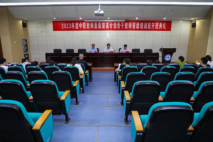 为贯彻落实习近平总书记关于教育的重要论述和全国、全省职业教育大会精神,切实加强我省中职学校“双师型”教师培养培训,提高教师教育教学水平,根据上级有关文件精神,7月22日,我校在会议中心第二报告厅举行了2023年度中职教师素质提高计划省级培训班开班典礼。我校党委委员、副院长李升和,继续教育学院副院长李忠(主持工作)、张文国,相关工作人员及来自全省各中职学校的近30名骨干教师参加了开班典礼。典礼由李忠主持。