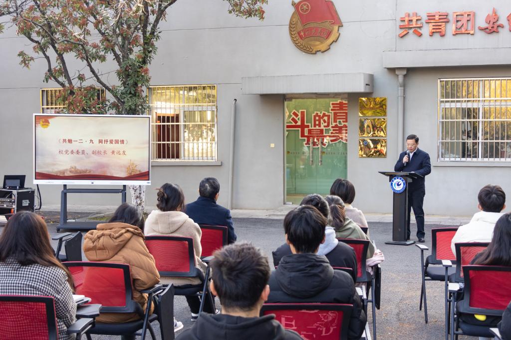 12月8日上午,环亚在线手机版(大中国区)纪念“一二·九运动”沉浸式诵读会在凤阳校区五四广场举办,校党委委员、副院长黄远友与现场同学们一道,以沉浸式诗文朗诵的形式,开展了一场别开生面的思政课。