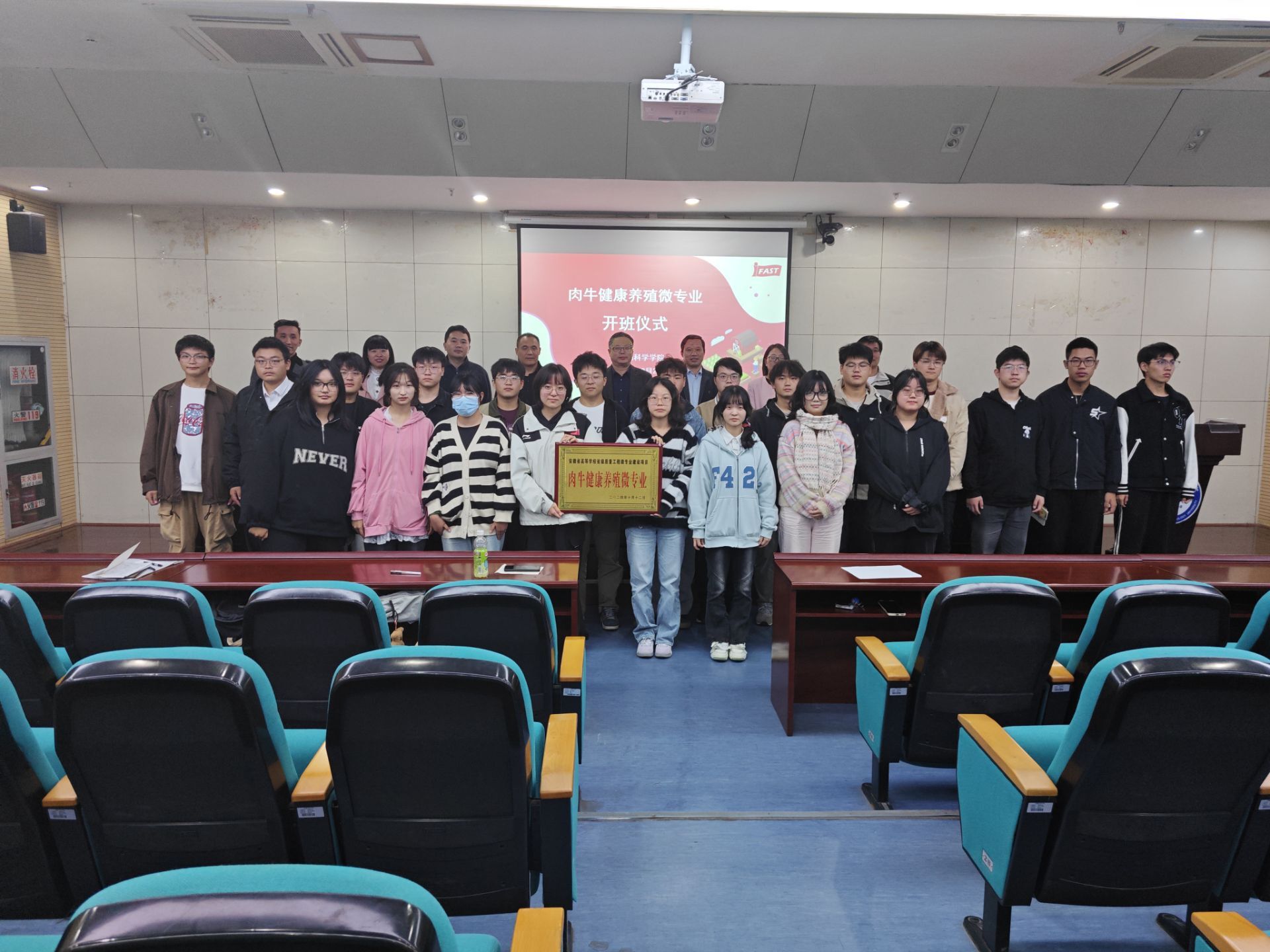 动物科学学院党政主要领导在致辞中指出“肉牛健康养殖”微专业的设立顺应“新农科”发展趋势,立足于国家乡村振兴战略和现代肉牛产业发展,依托安徽肉牛现代产业学院,旨在提升学生对肉牛生产知识的理解与掌握,突出智能化、信息化和生物技术化,培养一批具备现代肉牛养殖理念、掌握先进养殖技术的创新型、复合型、应用型人才。