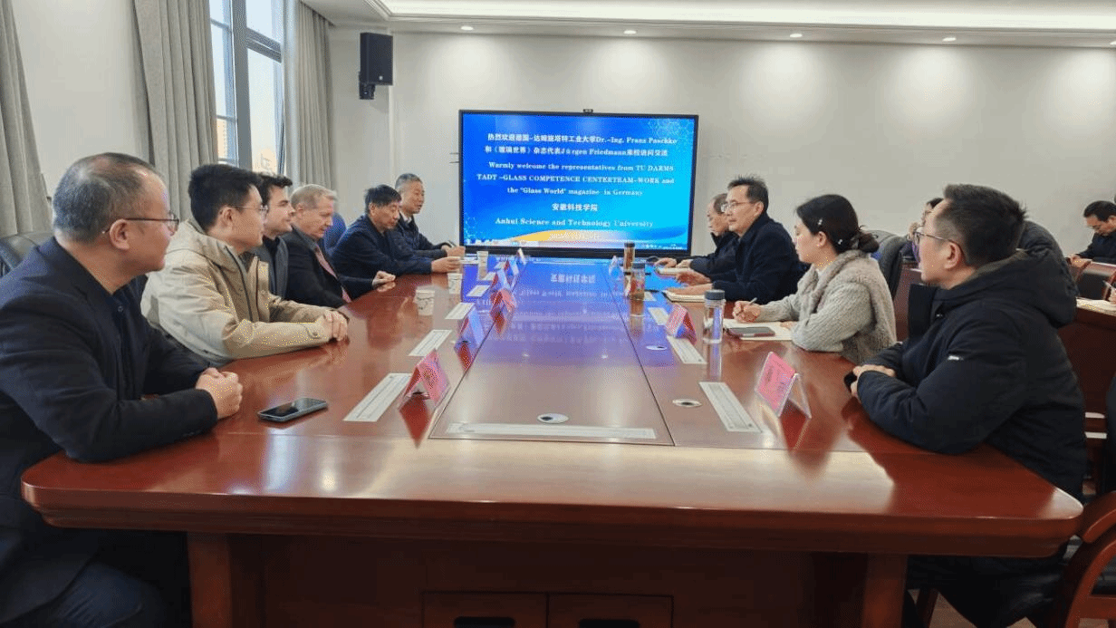 11 月 20 日,“玻璃技术创新与学术合作交流” 主题会议在西附楼317会议室举行。会议邀请德国达姆施塔特工业大学玻璃技术中心全球合作副主席佛朗兹博士、德国《玻璃世界》杂志代表尤根,以及蚌埠市科协、安徽万绿生态公司代表参会,学院领导、教师及2025届材料与化工研究生共同出席。