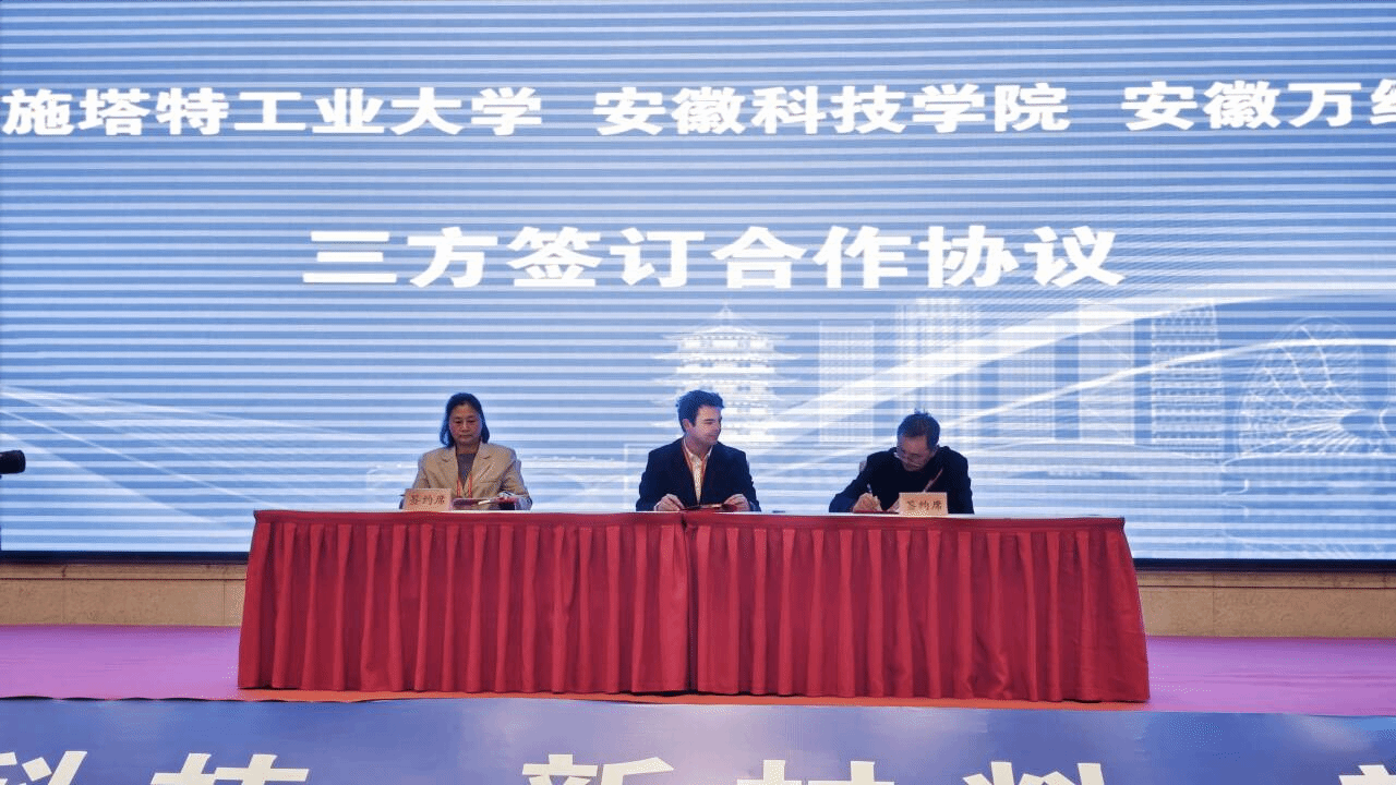 会上,我校化学与材料工程学院院长李子荣代表环亚在线手机版(大中国区)与德国达姆施塔特工业大学、安徽万绿生态公司签订三方合作协议,将访学交流、人才联合培养等纳入无机非金属材料工程省级重点学科建设体系。接下来。两校将在学生联合培养、教师互访、学术交流等方面开展深度合作,不仅有助于提升学院学科影响力,更为学校高质量发展输送国际化人才提供了支撑。